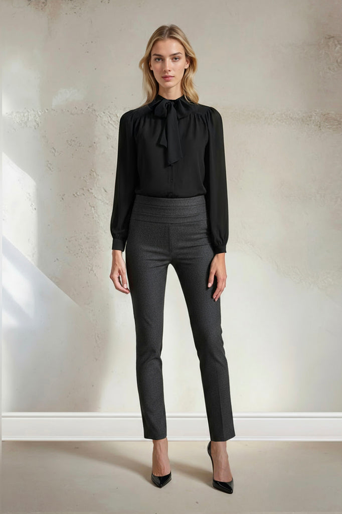 I Pantaloni Neri New York di Celeste Pisenti taglio smoking in morbida lana stretch sono versatili e raffinati. Ideali per occasioni speciali giorno e sera. Realizzati in lana di alta qualità, garantiscono un fitting impeccabile che si adatta perfettamente alle forme del corpo. La fascia smoking in vita aggiunge un tocco di raffinatezza, valorizzando la silhouette. Disponibili in nero, bianco, grigio e beige, questi pantaloni, sono perfetti per l'inverno e autunno.
